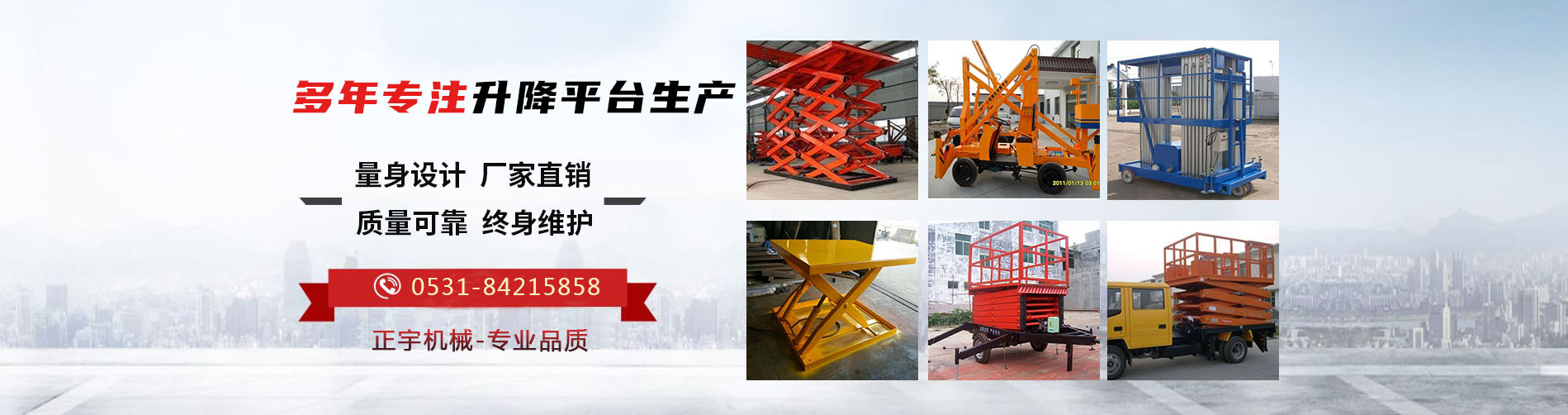 濟(jì)南正宇升降機(jī)械有限公司是一家集設(shè)計、研發(fā)、生產(chǎn)和銷售于一體的制造型企業(yè),生產(chǎn)液壓升降機(jī)械和高空作業(yè)平臺,公司處于素有泉城美稱的山東省濟(jì)南市,坐落于濟(jì)北開發(fā)區(qū)。優(yōu)越的地理位置和便利的交通給公司的發(fā)展帶來了充分的條件。正宇液壓技術(shù)力量厚,工藝流程先進(jìn)合理,檢測手段齊全。目前主要產(chǎn)品有:高空作業(yè)平臺、登車橋、固定升降機(jī)、移動升降機(jī)以及鋁合金升降機(jī)等等。公司產(chǎn)品具有設(shè)計新穎、結(jié)構(gòu)合理、升降平穩(wěn)、載重安全、操作簡單、維護(hù)方便等優(yōu)點。產(chǎn)品廣泛應(yīng)用于各個行業(yè),如工礦企業(yè)、生產(chǎn)流水線、鐵路、機(jī)場、車站碼頭、貨物裝卸升舉、廠房工地、倉儲物流、高空設(shè)備安裝等場合。公司以誠信、創(chuàng)新、穩(wěn)健為宗旨,以品質(zhì)、完善服務(wù)的理念,迎接市場的挑戰(zhàn)。期待您的咨詢!